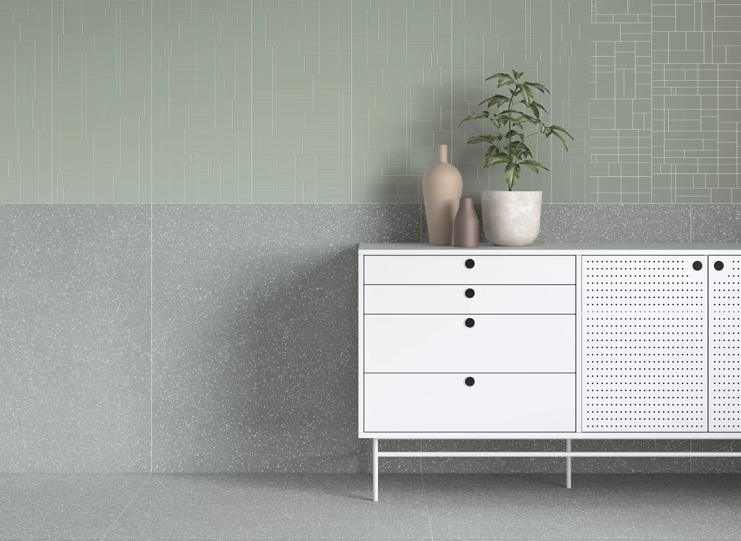Bet, es una de nuestras colecciones de terrazo. Esta colección imita la técnica de origen veneciano, donde se mezclaban pequeños fragmentos de mármol y cemento. Sobre un cementado mate, la colección Bet, trabaja microfragmentos con diferentes tamaños y tonalidades y con acabado brillo, que le aportan frescura a a estancia.