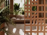 Hay lugares donde la luz se filtra suavemente y el aire se mueve con libertad; Bird trae esa sensación a cualquier espacio. Esta celosía de barro transforma siglos de conocimiento artesanal en un diseño moderno, versátil y lleno de carácter. Cada pieza parece respirar con su entorno, dejando pasar la luz, creando sombras y ofreciendo frescura, mientras mantiene la calidez y autenticidad de la materia natural.Su sistema modular, con formatos de 20,7x20,7 cm, 10x10 cm y 20,7x10 cm, y profundidad de 10 cm, permite componer superficies que se adaptan a cualquier arquitectura. Jugar con piezas de llenos y vacíos generan movimiento y profundidad, convirtiendo las paredes en elementos vivos que cambian con la luz del día y la perspectiva de quien las observa.El color Clay, cálido y terroso, refuerza la conexión con el barro y la tradición, llevando a interiores y exteriores un toque de autenticidad y naturalidad. Bird no es solo un revestimiento: es una pieza que combina la maestría artesanal con la libertad creativa del diseño contemporáneo, ofreciendo soluciones que son a la vez estéticas, funcionales y llenas de alma.