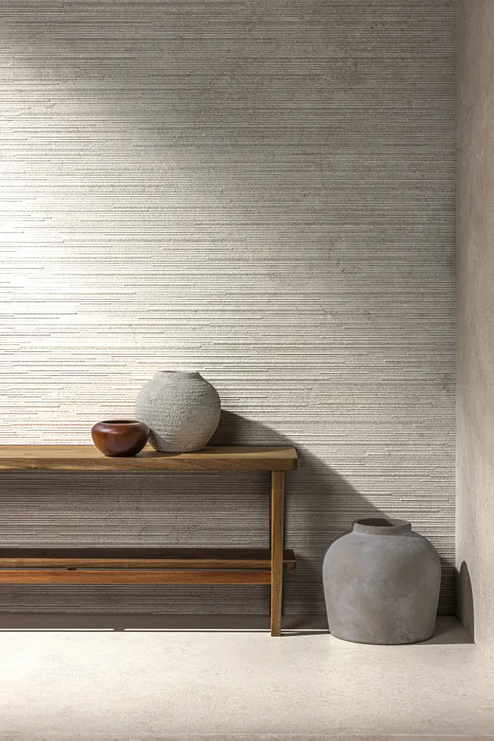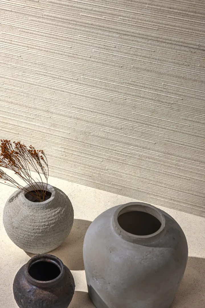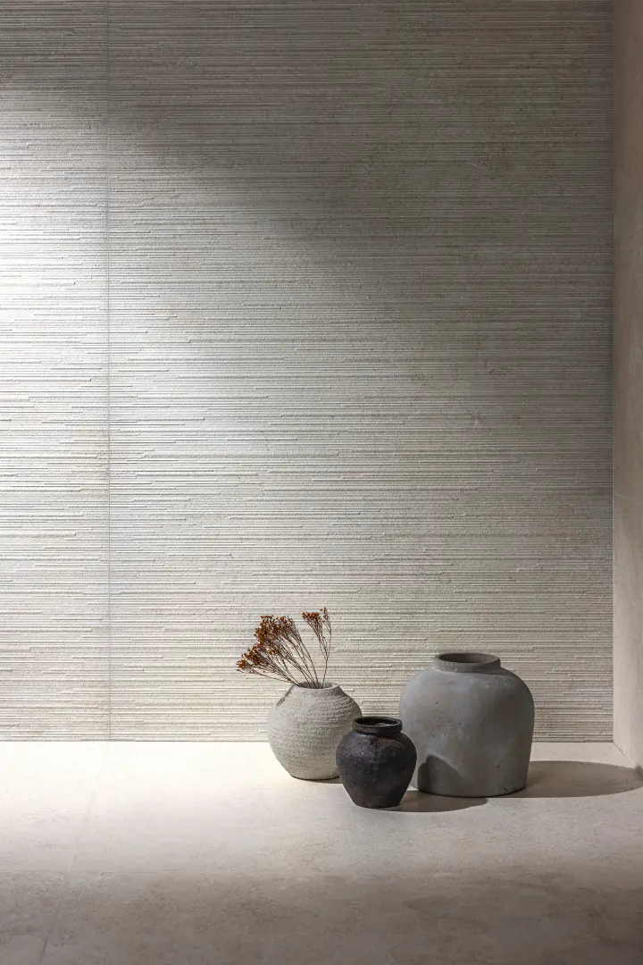 Eon reinventa la nobleza de la piedra francesa con una mirada contemporánea. Su superficie combina zonas fosilizadas con áreas más suaves y ligeras, creando un equilibrio visual único que aporta carácter y sofisticación a cualquier espacio.La colección se presenta en tres tonos cálidos, pensados para adaptarse a estilos mediterráneos, nórdicos o modernos. La innovación se encuentra en cada detalle: relieves porcelánicos en 60×120 cm y revestimientos lineales en white y sand, ofreciendo infinitas posibilidades de diseño.Eon traslada la esencia de la colección al revestimiento en formato 33×100 cm. Disponible en dos tonos cálidos y naturales, añade dinamismo y textura a las paredes, gracias a sus decorados exclusivos que permiten crear composiciones calmadas y versátiles. Con Eon, cada espacio se transforma en un diálogo entre la elegancia atemporal de la piedra francesa y la libertad del diseño contemporáneo.