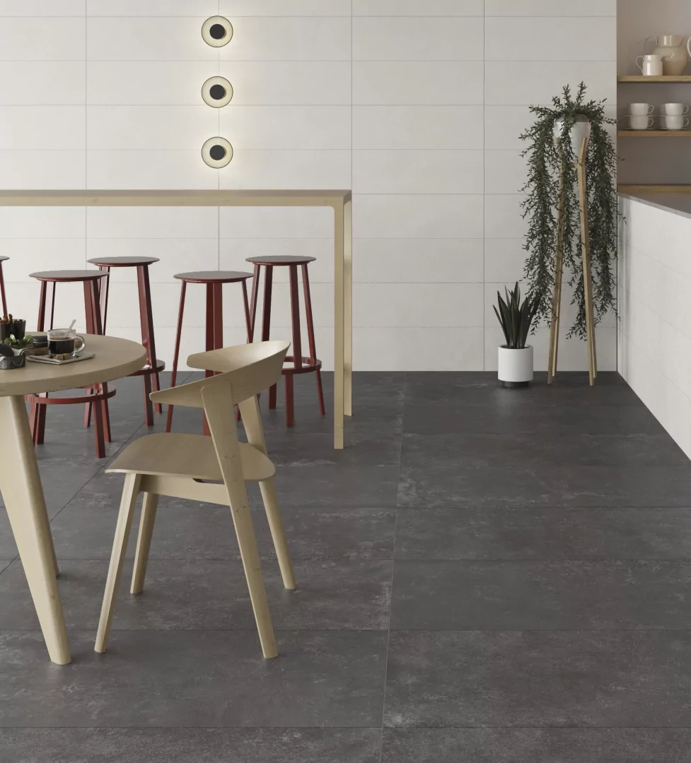 Nadir, es una colección con carácter. Cemento con un particular destono entre sus piezas, hace de Nadir, una colección especial pues está disponible en múltiples acabados entre los que se encuentra, Soft & Antislip, que presenta un tacto suave, ideal para interior pero además, ofrece un alto grado en antideslizamiento.