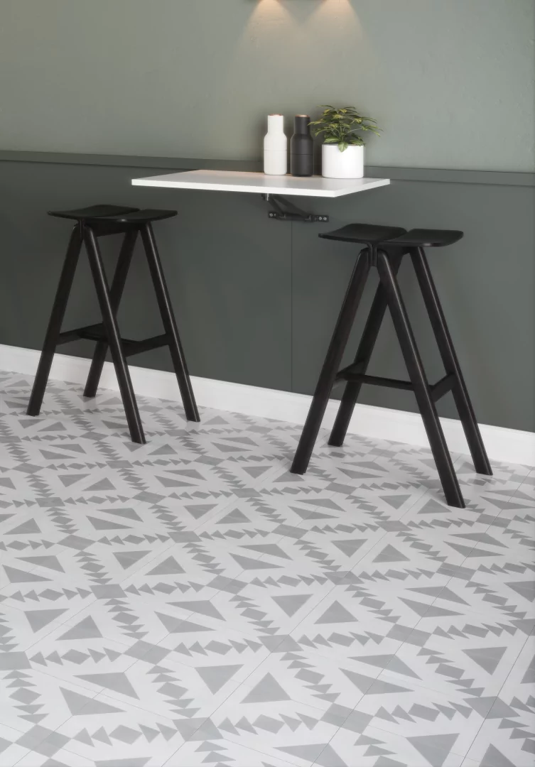 De inspiración modernista, Sibuyé, es una colección de estética hidráulica. Trabajada con decorados geométricos y ornamentales, se presenta en dos gamas cromáticas: en una de ellas predominan los grises, y en la otra, el blanco y el negro.