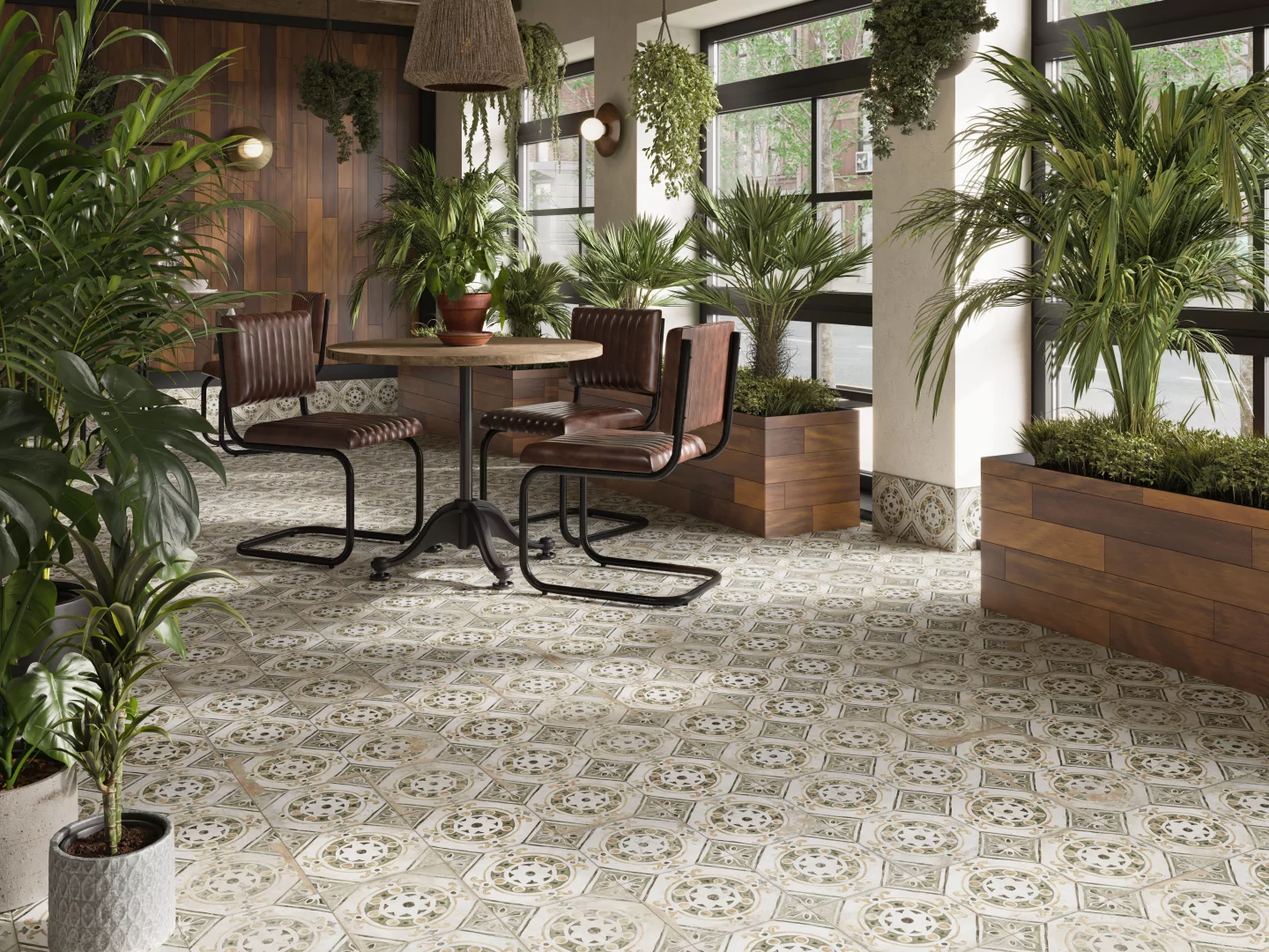Inspirada en los pavimentos y revestimientos de los azulejos fragmentados de colores característicos de la ciudad de Oporto, VG Bit trabaja sus piezas con precorte en la que se puede apreciar la composición de cuatro piezas. Sus decorados de aspecto artesanal, simulan ser pintados a mano evocando a los azulejos vintage.
