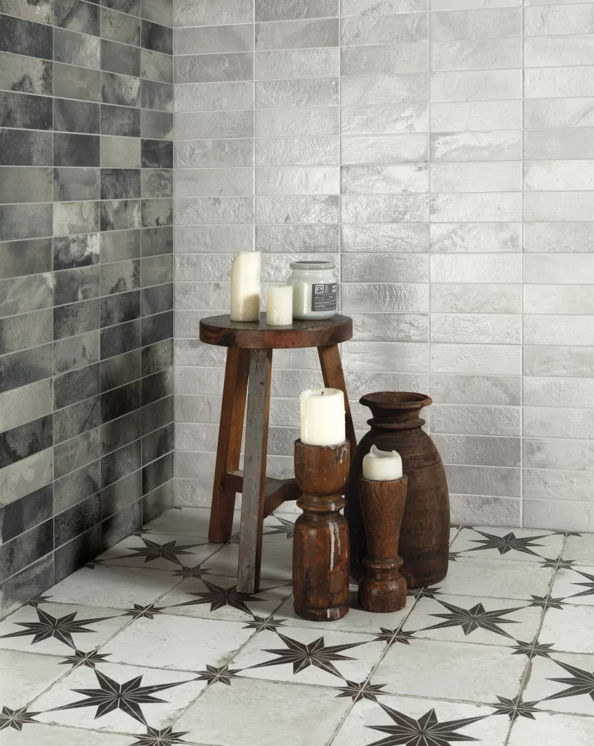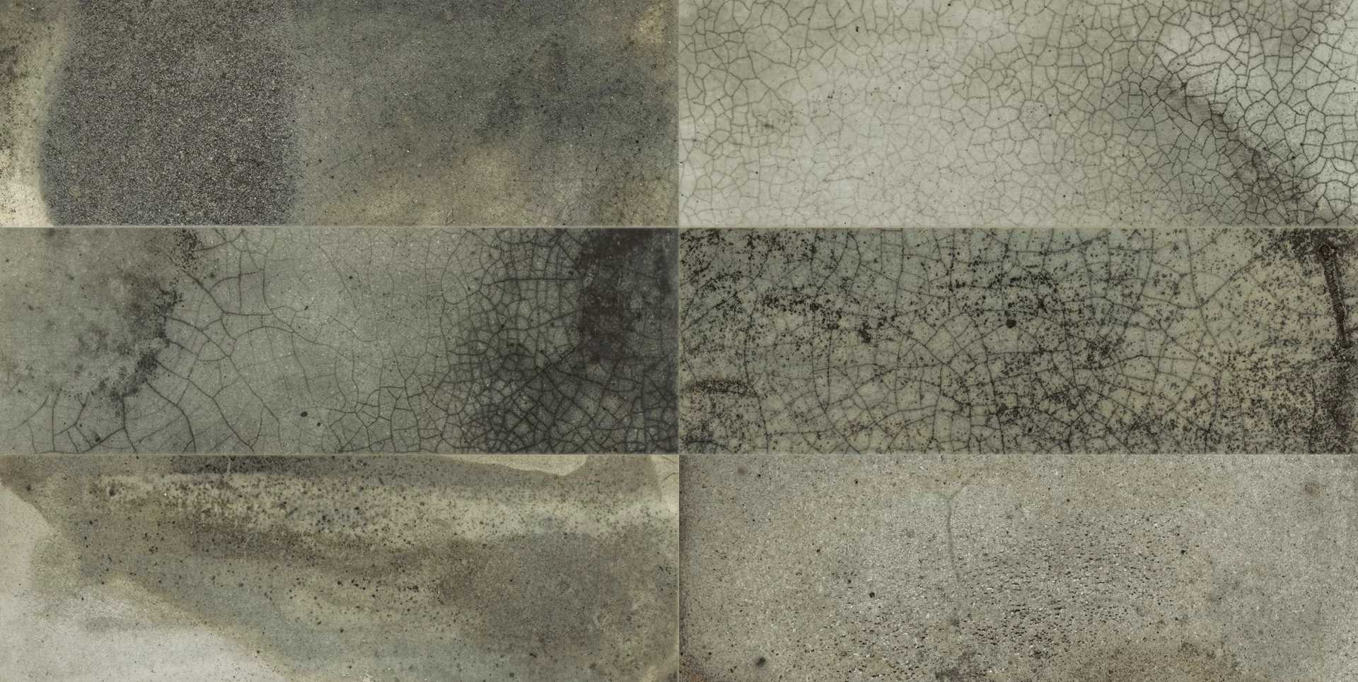 A través de esta técnica, VG Canea se presenta como si se tratase de seis piezas en formato brick, con craquelados y destonos en cada pieza.