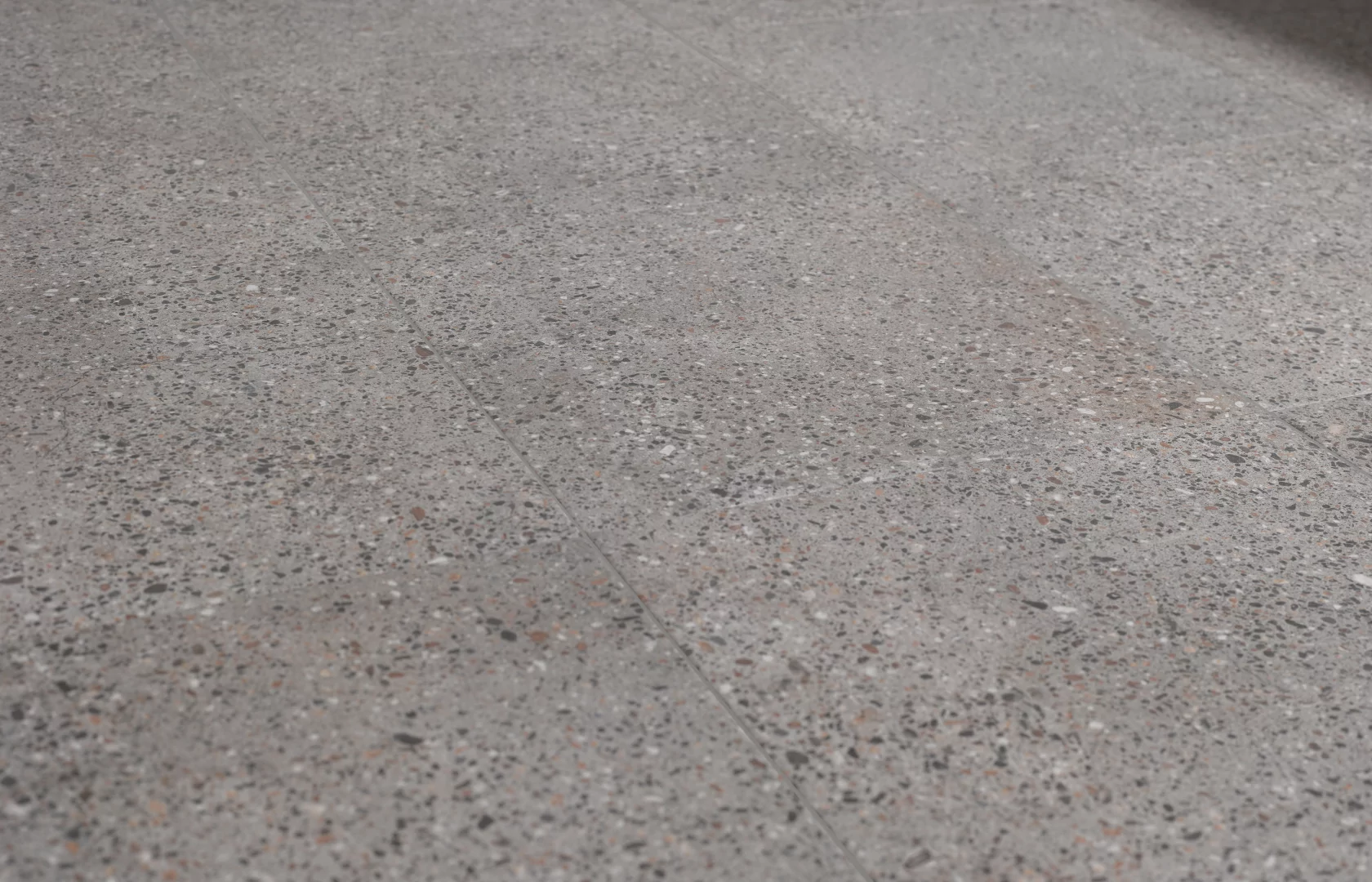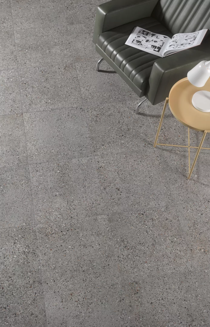 VG Road nos evoca a uno de los clásicos pavimentos, el terrazo. Una propuesta de grano pequeño y en dos formatos disponibles, que hacen de VG Road una colección vintage estupenda para combinar con colecciones de estética industrial.