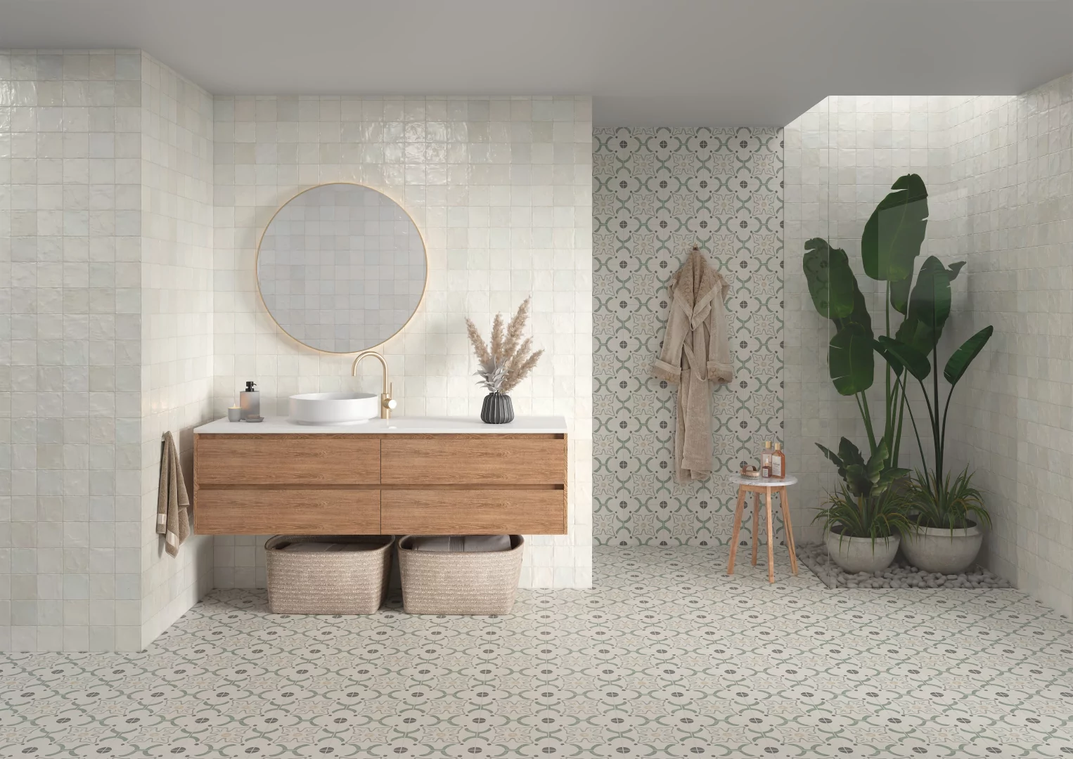 De tonalidades azules y verdes, Bormio es una colección que aporta luminosidad a la estancia, y es que sobre el fondo blanco se dibujan trazos con motivos florales que le dan luz a la pieza y ese toque artístico a la colección.