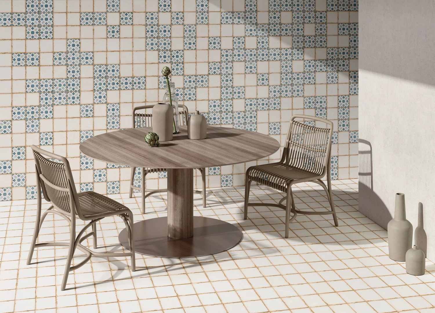 Es presentada como una colección artesanal, con bordes irregulares y acabado envejecido. Cuenta con decorados mediterráneos que pueden ser combinados con una base neutra y crear así, una armonía perfecta en el espacio.