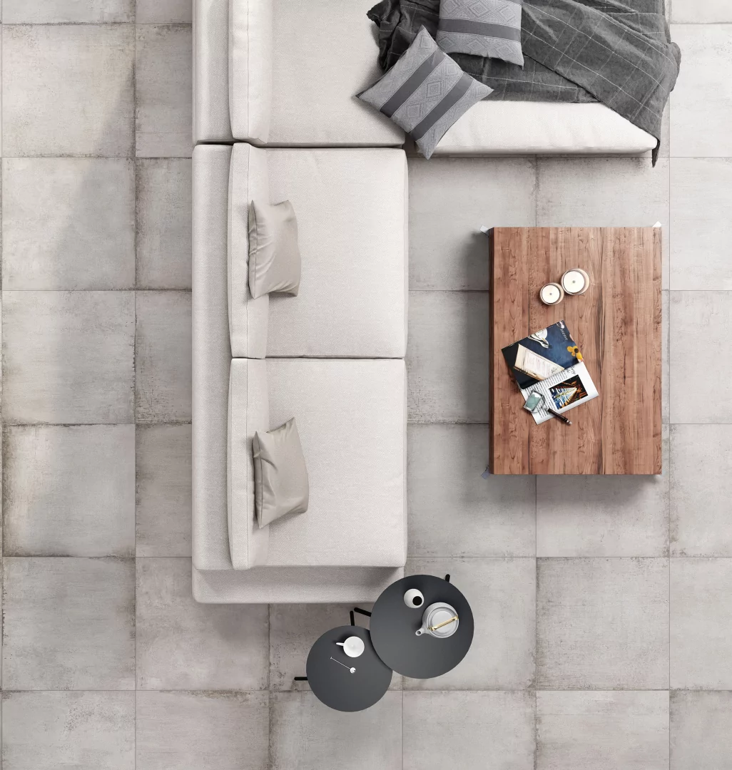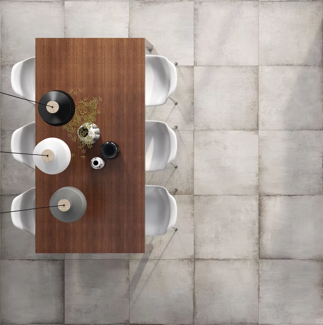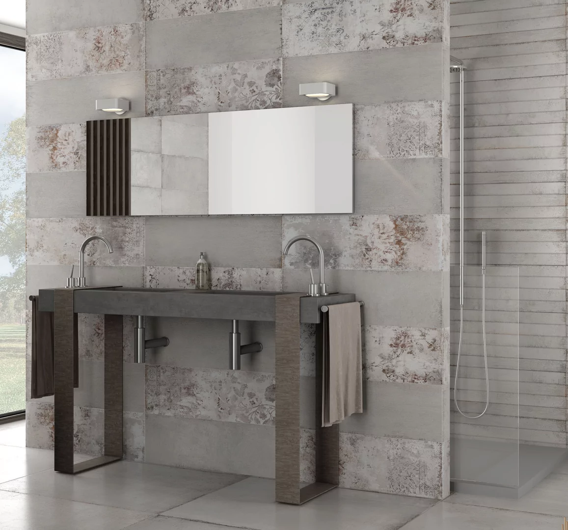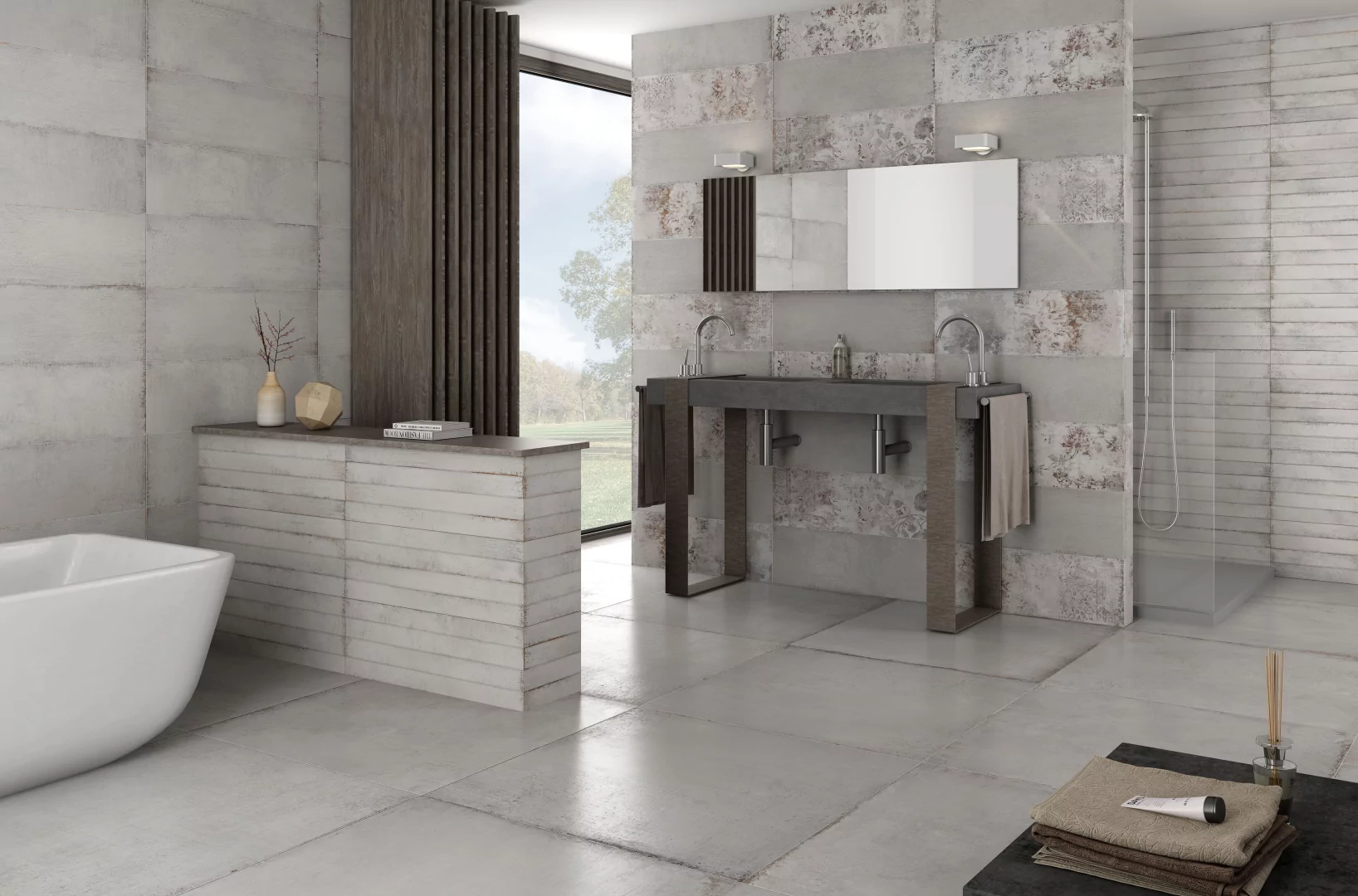 Grint es nuestra colección inspirada en neo-grunge. Se trata de bases que combinan luz y óxido en dos tonalidades diferentes: "Salt" y "Cinder" que mezcladas con sus decorados inspirados en placas de metal onduladas, crean acabados de metálicos pintados.