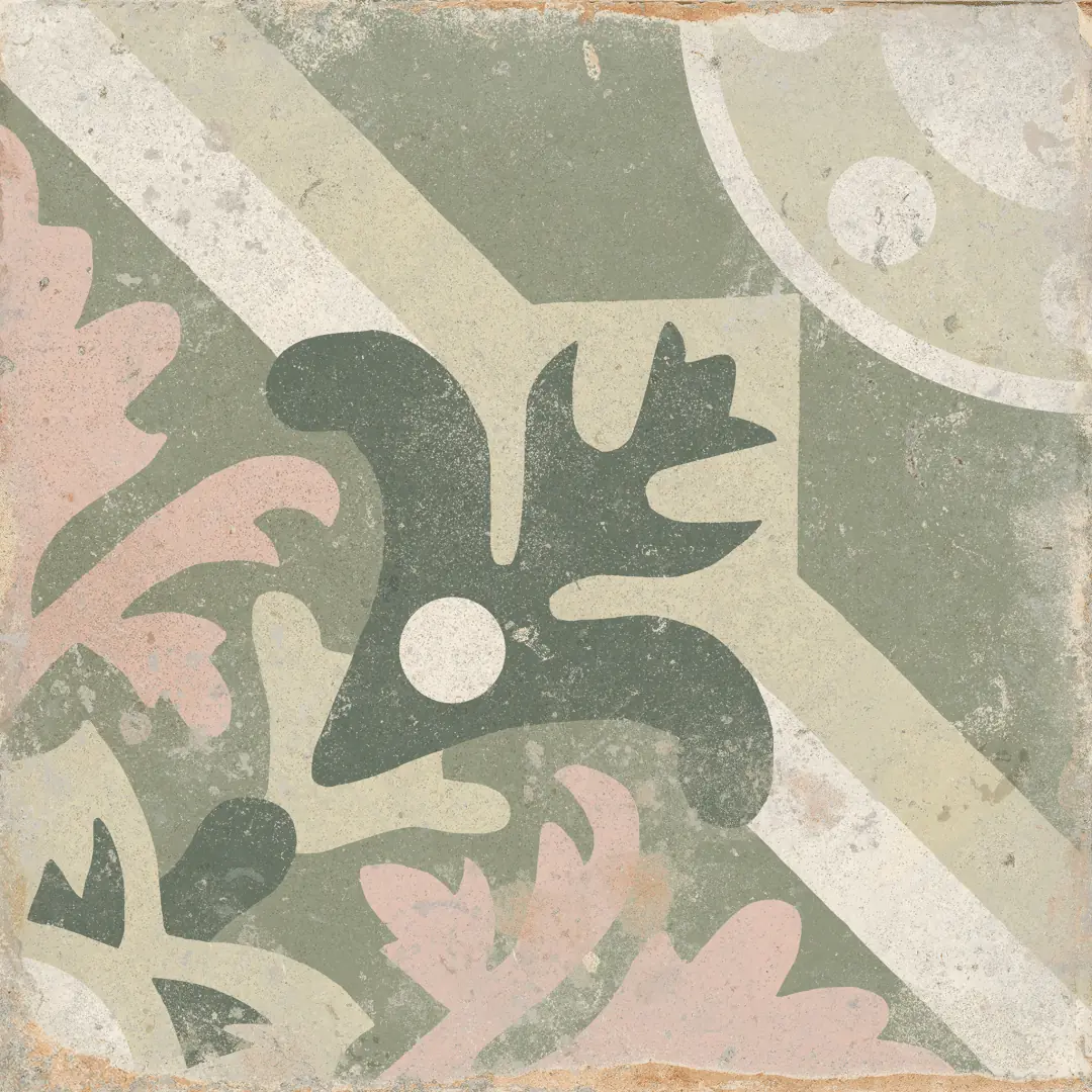 Esta colección de azulejos vintage de aspecto hidráulico es un homenaje a los edificios con historia. Los colores empolvados aportan calidez y una sutil viveza a los espacios.