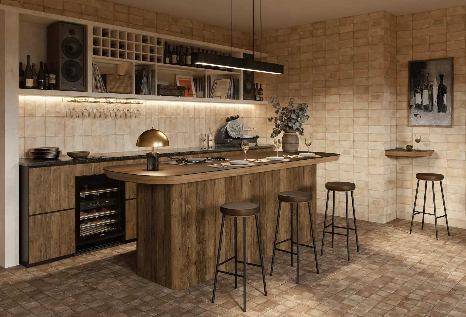 VG Vecchio, es un porcelánico que celebra la autenticidad del cotto artesanal, reinterpretado con un enfoque contemporáneo . Cada pieza, en formato 22×22 cm, refleja la esencia vintage de los suelos tradicionales, mientras su relieve cuidadosamente trabajado aporta textura y realismo al barro cocido.La colección se ofrece en tres tonalidades cálidas y cuenta con versiones precortadas: cuatro tacos cuadrados o dos piezas rectangulares, pensadas para adaptarse a diferentes composiciones y estilos. Las piezas decorativas combinan armoniosamente los colores, con triángulos en Natural y Coal y diseños cuadrados en Sand y Natural, añadiendo dinamismo y carácter a cada espacio.VG Vecchio no es solo un revestimiento: es una reinterpretación contemporánea de la tradición, diseñada para dar personalidad y calidez a cualquier ambiente.